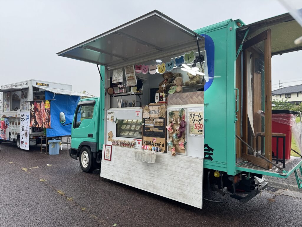 また、テントの奥にはキッチンカーのブースもございました。キッチンカーで買い物するのも好きなボク。今回は坂出市から出張販売に来ていた『くまcafe』さんのフルーツサンドを食べてみる事にしました。