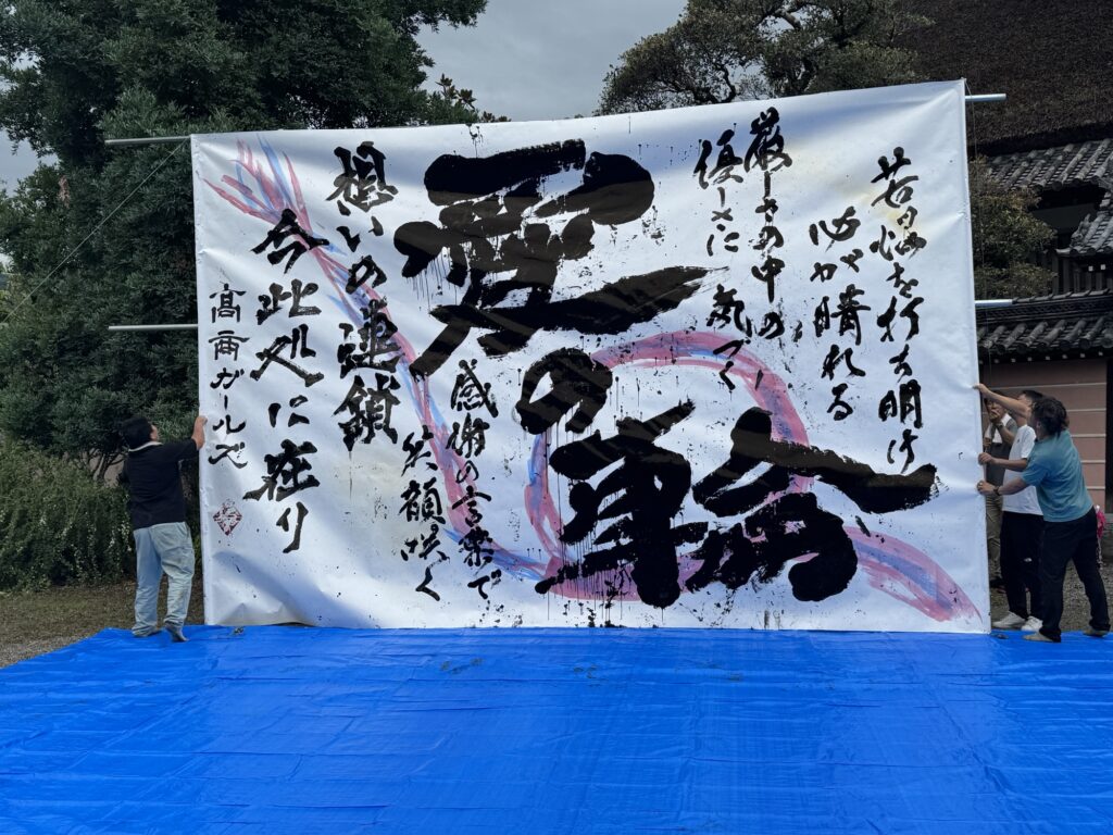 こちらのイベントでは書道部の皆さんによるパフォーマンスが行われていたのですが、最後の高商ガールズの皆さんのパフォーマンスのみ見学する事が出来ました。