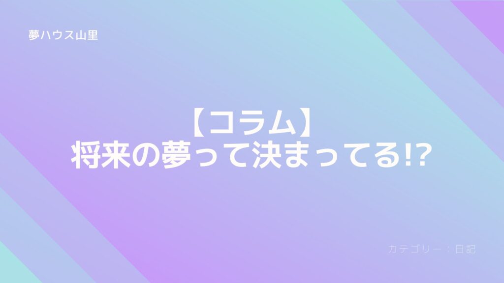 皆さまお疲れ様です!!夢ハウス山里(@srv1106takeda)です。さて、本日のコラムでは『自分自身の将来像』についてお話したいと思います。 前回のコラムでは『自分自身の強さ』の事について語ってきましたが、今回は将来像についてお話をしたいと思い... -