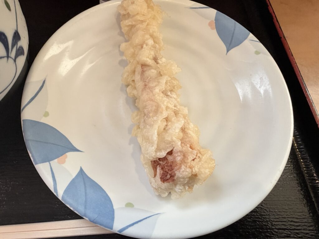 サイドメニューのちくわの天ぷらは、半切りの物を注文。1本丸々でもよかったのですが、それだと食べ過ぎになるかな?って思ったので、今回はハーフサイズとしました。